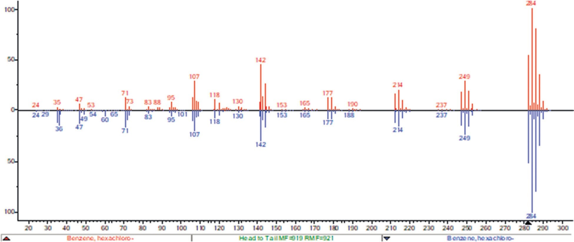 - Смещение вершин пиков на нормализованных графиках спектров относительно библиотечного спектра ПФТБА не превышает 0.1 а.е.м.