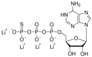 Adenosine 5′-[γ-thio]triphosphate tetralithium salt has been used to treat the pollen grains to determine the inhibitory effect of adenosine triphosphate (ATP) or its hydrolysis product. It has also been used to select thiophosphorylate target protein.