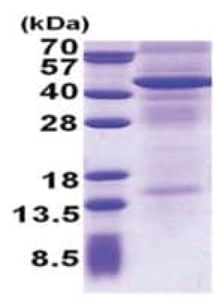 IL13RA2 is closely related to Il13RA1, a subunit of the interleukin 13 receptor complex. This protein binds IL13 with high affinity, but lacks cytoplasmic domain, and does not appear to function as a signal mediator. It is reported to play a role in the internalization of IL13. Recombinant human IL13RA2 protein, fused to His-tag at N-terminus, was expressed in E.coli._x000D_