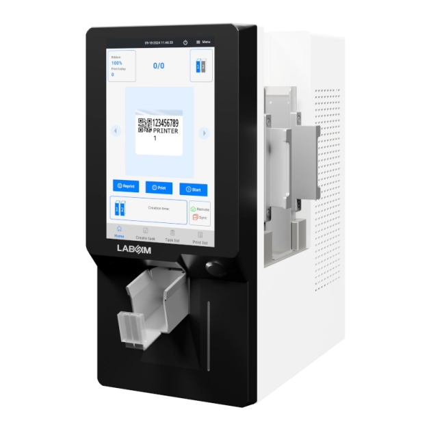 Мини-принтер предназначен для маркировки предметных стекол, включая стекла с колорированным краем. Лазерная технология обеспечивает четкую, контрастную печать, устойчивую к химическим реагентам. Поддерживается печать на стандартных и иммуногистохимических стеклах. Компактный корпус позволяет устанавливать принтер непосредственно на микротом. Встроенный сканер ускоряет ввод данных. Принтер поддерживает свободное редактирование шаблонов печати, может работать автономно или подключаться к LIS, HIS, PIS, PACS.