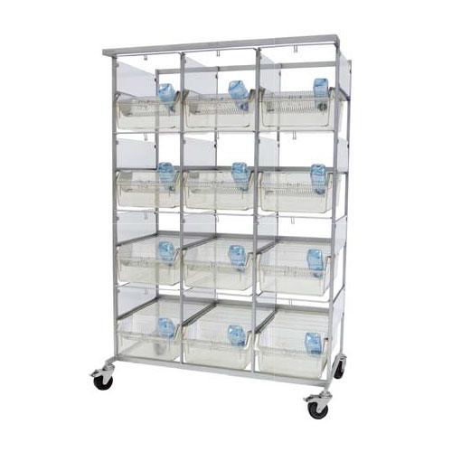 Стеллаж для клеток типа 4 с ручкой от Zoonlab – это высококачественное оборудование, предназначенное для эффективного хранения и транспортировки лабораторных клеток. Изготовлен из нержавеющей стали AISI 304, что обеспечивает высокую коррозионную стойкость и долговечность. Стеллаж рассчитан на 12 клеток, размещенных на 4 уровнях, что позволяет рационально использовать пространство в виварии. Оснащен 4 роликами диаметром 100 мм, из которых 2 имеют механизм блокировки, что обеспечивает удобство перемещения и стабильность при использовании. Расстояние между нижней гранью и полом составляет 305 мм, что облегчает процесс загрузки и выгрузки клеток.